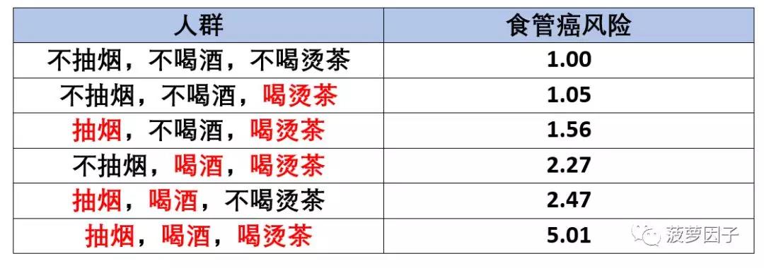 1:喝烫茶本身并没有增加食管癌风险。